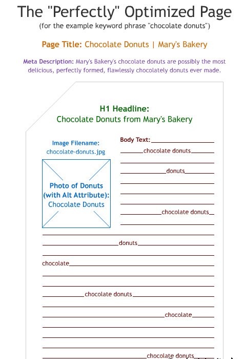 The following picture already contains a page to optimize all the most basic factors, from the keywords, title, pictures, URL, H1 to the keyword density are covered very well,