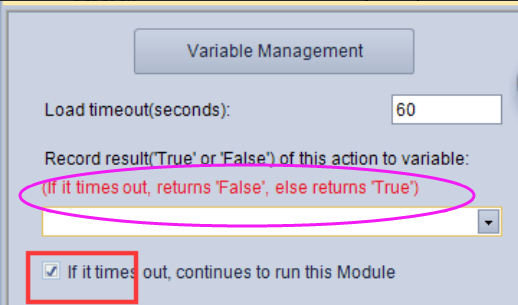 The command set in the screenshot is written to return the timeout is false. If you want it to return true, then please make a judgement based on your needs.