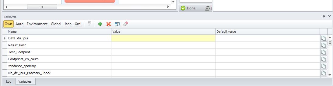 with zennoposter , i have windows to show variable in time real (top for debug) , on this picture all variable are empty :)