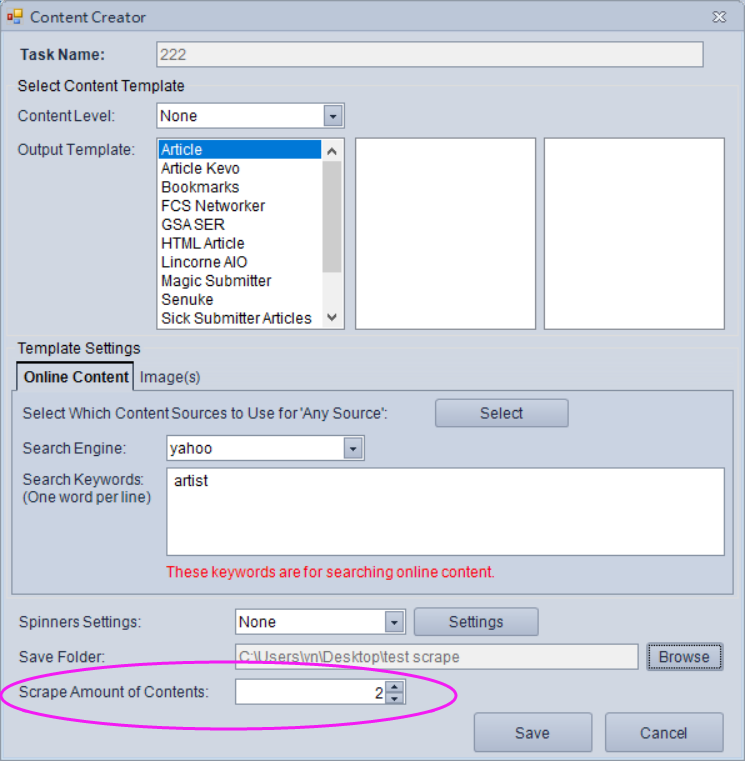 tried everything possible to help my friend fix it. We created a new blog https://teeemzee.wordpress.com just for test purposes for this program but we can't get the right format... PLEASE REPLY WITH A PHOTO OF WORDPRESS FORM WITH SCRAPED CONTENTS.