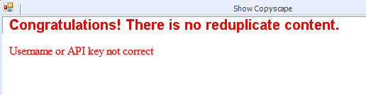 - I have also faced problem using copyscape option. It says " username and api key not correct."
