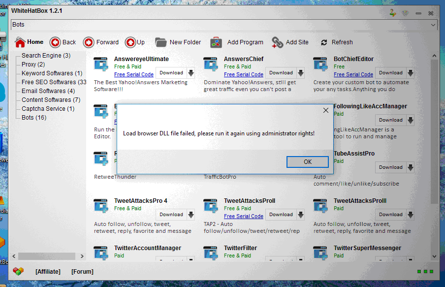 "Load browser DLL file failed, please run it again using administrator rights"