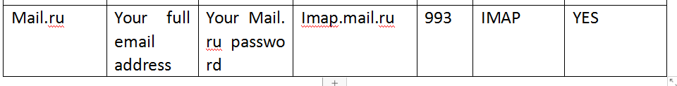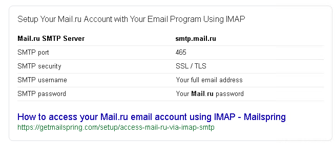 The server information of Mail.ru is wrong. You should enter the incoming server information but not outgoing.