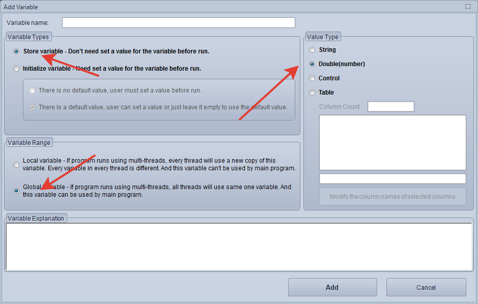 I am creating a variable of type double/number, global.