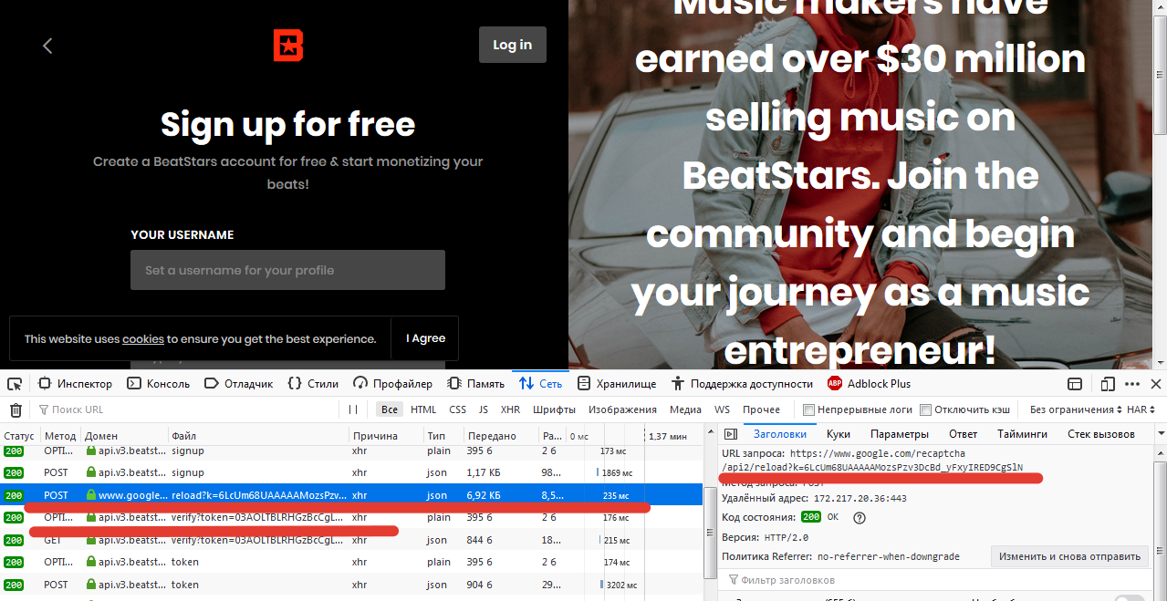 I saw this problem on the site beatstars.com - it fully uses the functions of the new captcha and does not allow to complete the registration.