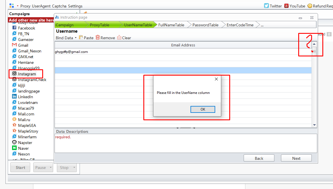 Because you didn't fill in the same count of email information as Account count. If you set Account count to 3, then there will be 3 lines of email information for you to fill in.
