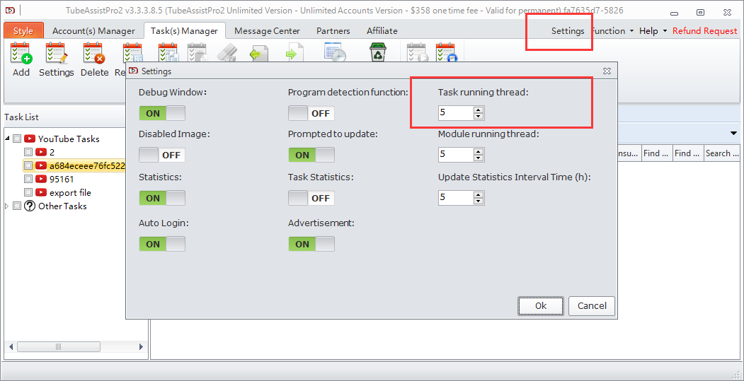 I need to know if i can put multiple videos on a single task, and all the accounts that have been bind to proxy can watch randomly and set them only once or twice watching the same videos. For example : i have 1000 accounts and 300 videos, can i set the software so that each account only watch one time per video. Please help me with this, or maybe running mulitask, and each task for 1 video? Can you help me please