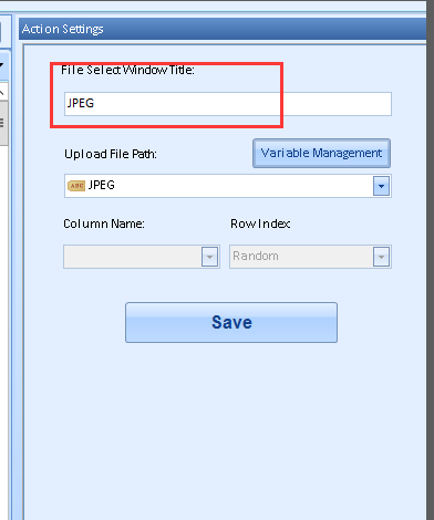 you should change the settings of 'Select files', fill 'File Upload' into the File Select Window Title