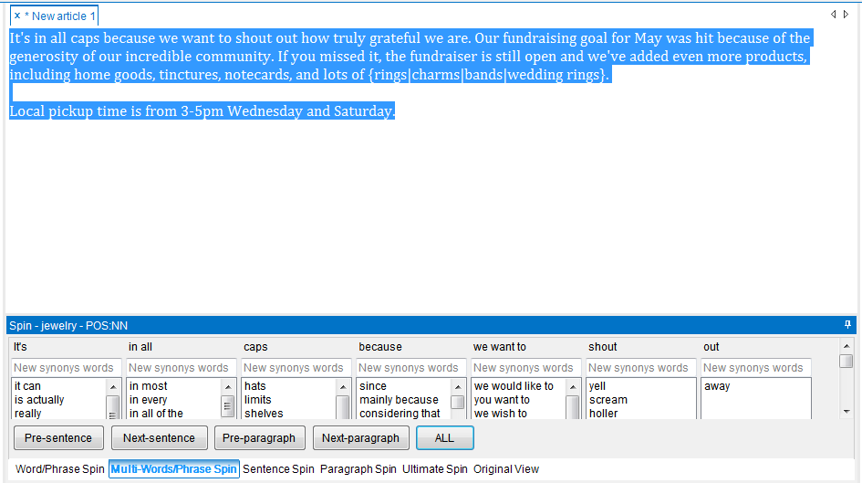 I pasted the content, identified synonyms, but when I go to spin it manually I don't see any options.