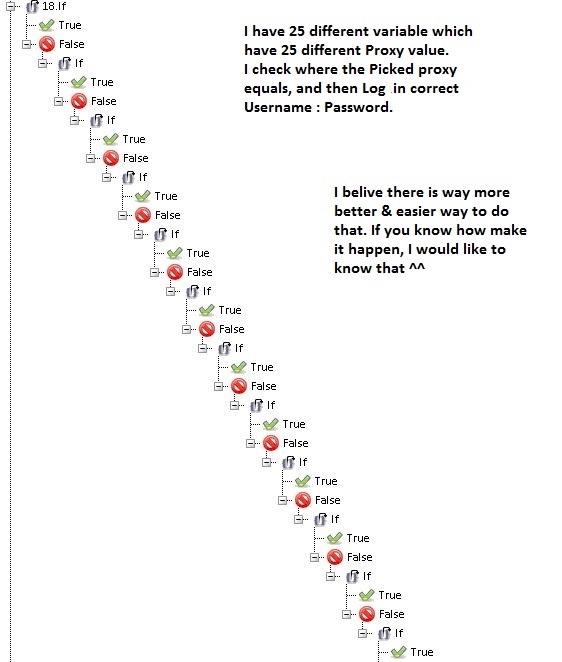 If I got 25 proxies, and each proxy have 2 accounts where to log in. What is smartest way to make that happen ? I have tried a lot of "IF" statements but I haven't find a way yet.