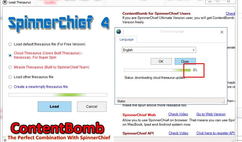 cloud thesaurus not updating, still at 0%
