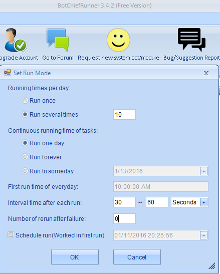 2) Botchief Runner IGNORES Interval Time after each Run.