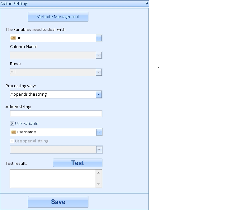 Hi jenrib, below the Added string tab, there are three options you can select: Blank text, Use variable, and Use special string. Which means you only can select one option among the three each time.