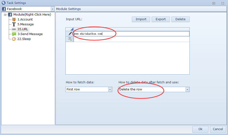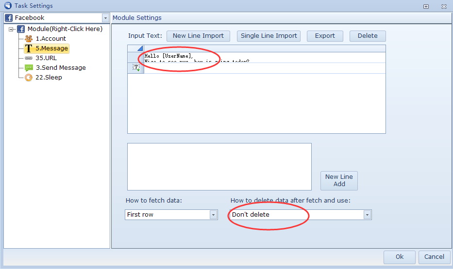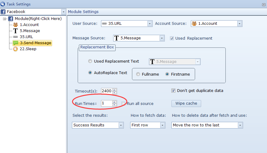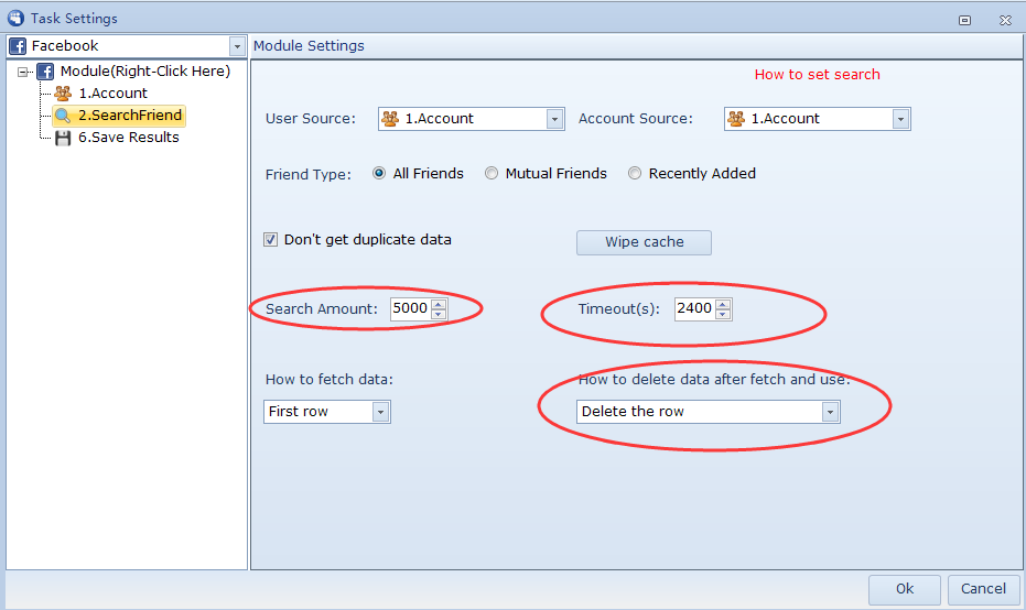 If you want to quickly search out all of your facebook friends, you can create one task first to search all friends.