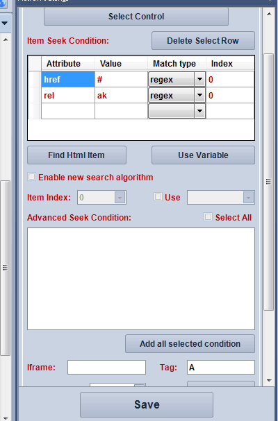 the menu has 16 options to choose from and when i use control operate it gives me only 1 html element and when and when i click test run i only clicks on the menu but it doesn't choose the option that i need .