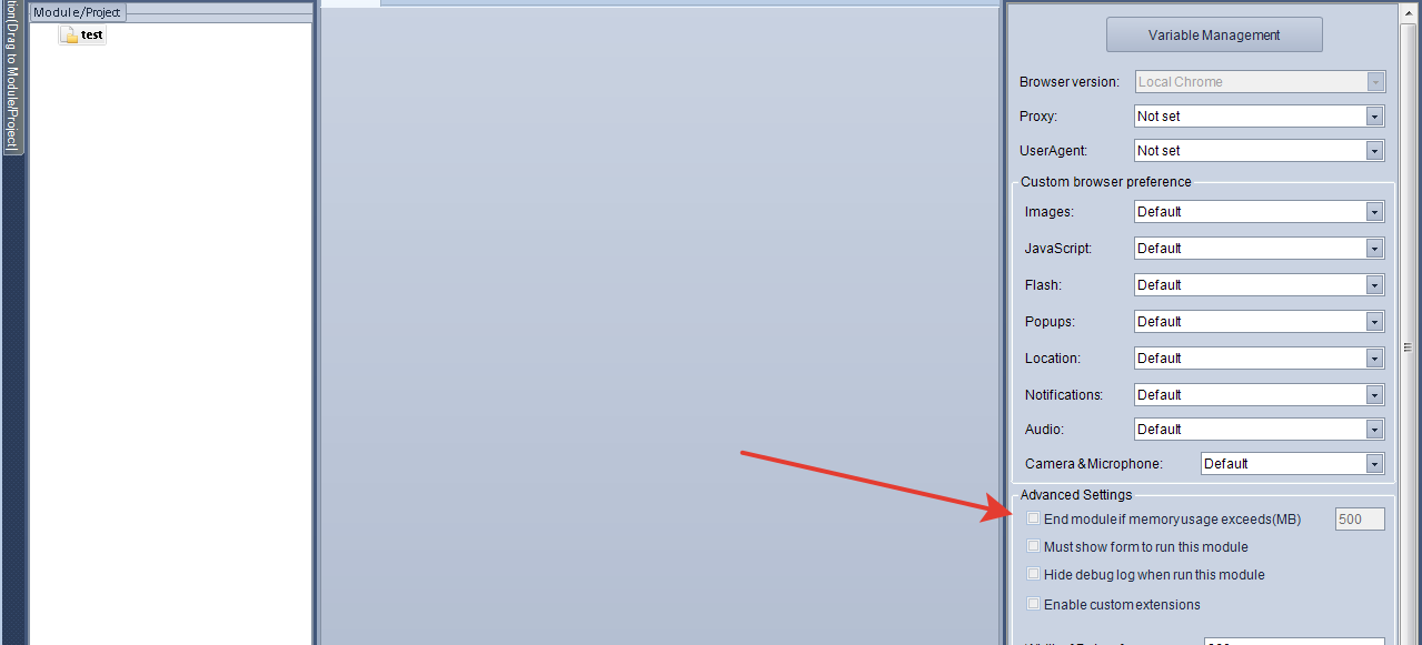 I have a module in BotChief. It works fine and the whole module behavies as desired. It consists in a loop scrapping content from a website, and write the content in a file. When I leave it working, in about 15 minutes or so, arises an error saying: BotChief stop working and two options as shown in the image.