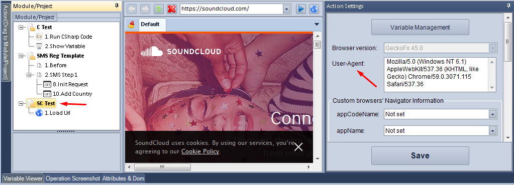In my test module the main page of soundcloud is loaded without problems and does not issue any messages. On which page of the site do you receive such a message?