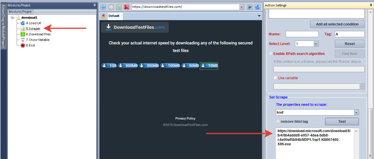 1. After loading the page, you can extract the download link from the page using the Scrape action.