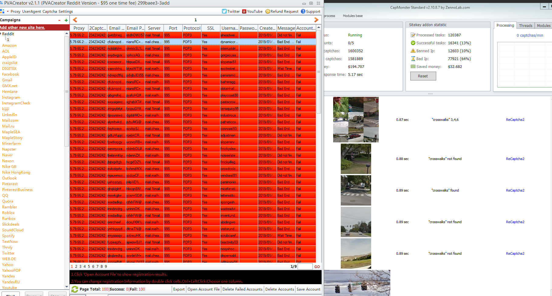 I just isolated the captcha solver FOR just PVAcreator, the captchas are being solved correctly, but the controls are not found in the next step, screenshot with error messages attached