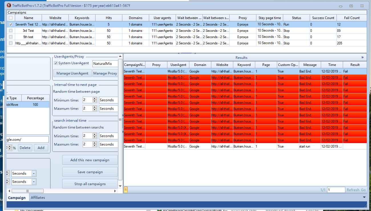 I have setup campaigns and just get Fail Count
