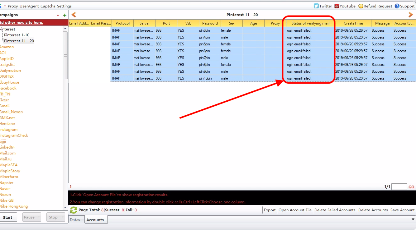 When I am creating the Pinterest accounts using PVA Creator, it is Failing to verify the email account.