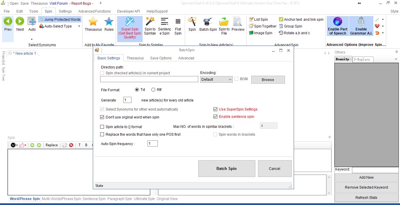 Operating System:Windows 7Operating System Bit:64bitSoftware Version:Spinnerchief 4 UltimateHi, I am using WP RSS Aggregator plugin and their Addons, I have also purchased Spinnerchief4 Ultimate account of Spinnerchief, but when i import my posts from my plugin posts are being imported perfectly, but they are not being spin also i can't see api hits/today's...